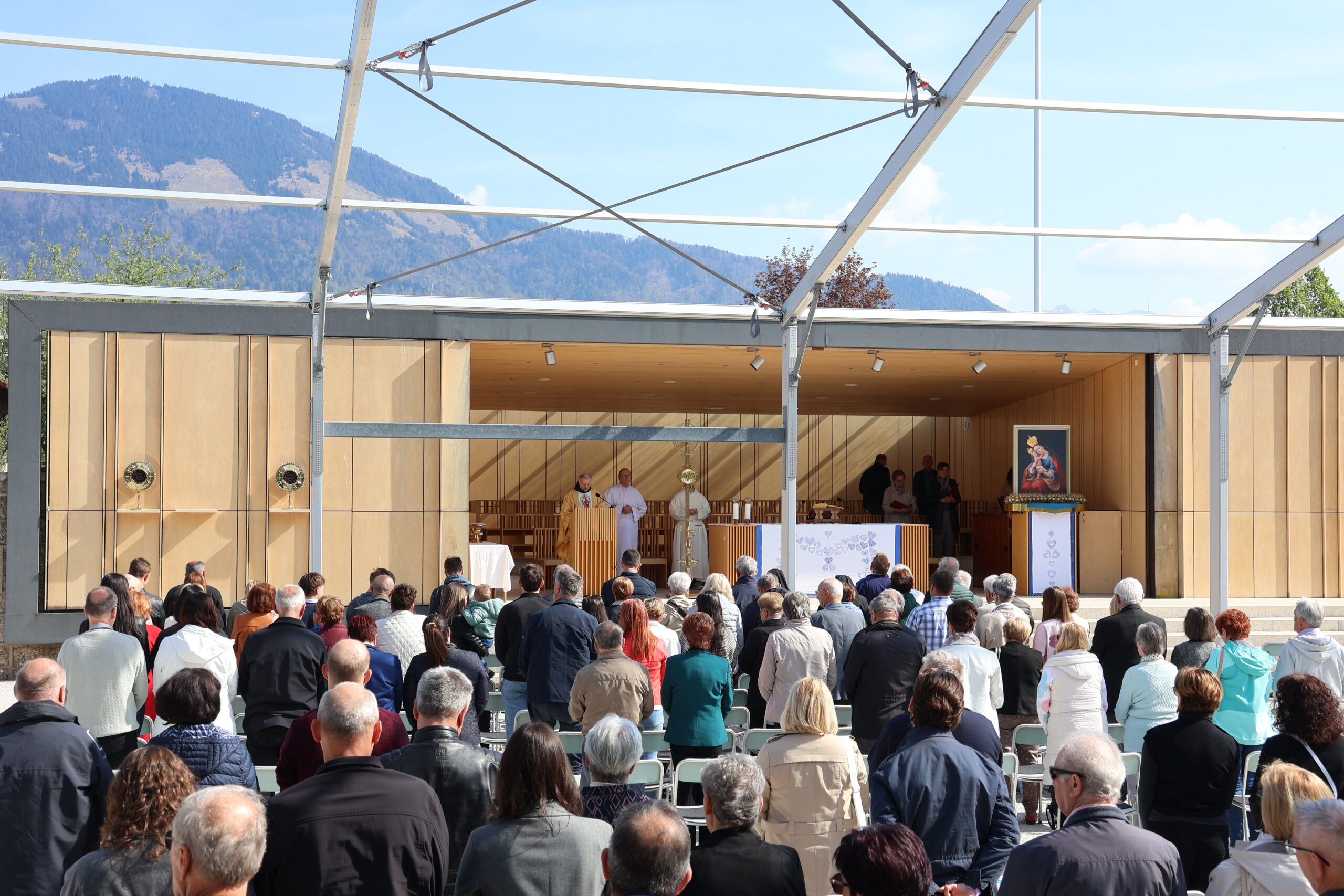 ‘Ogenj vere’, kot ga imenuje pokojni papež Benedikt XVI. je na 3. velikonočno nedeljo k Mariji Pomagaj pripeljal veliko romarjev. Osrednji romarski sveti maši, ob 10. uri in 11.30 sta bili na trgu pred baziliko Marije Pomagaj. V pridigi svete maše ob 10. uri je rektor svetišča, p. Robert Bahčič, spregovoril o današnji Božji besedi: “Današnji evangelij nam opisuje hudo stisko dveh ljudi. Učenca sta bila prepričana, da je sedaj, ko so Jezusa pribili na križ, vsega konec.