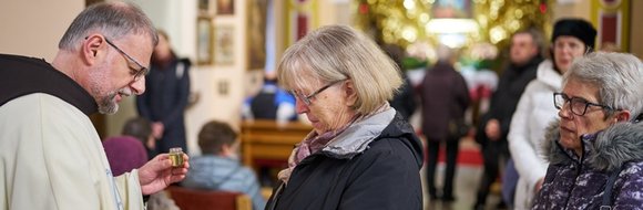 Po pridigi so duhovniki romarjem podelili bolniško maziljenje.