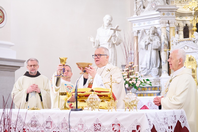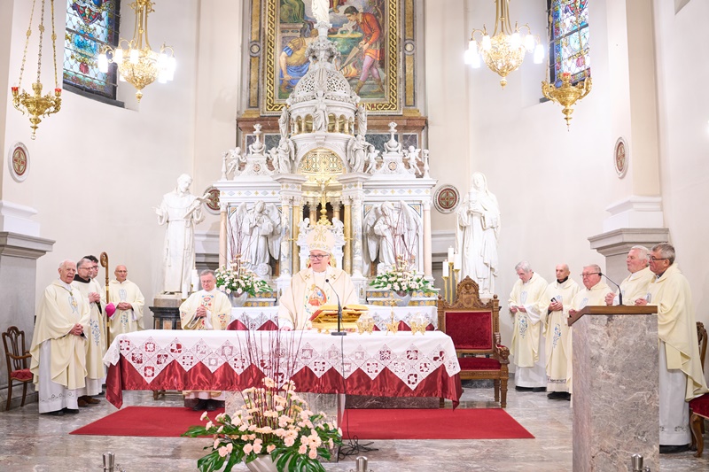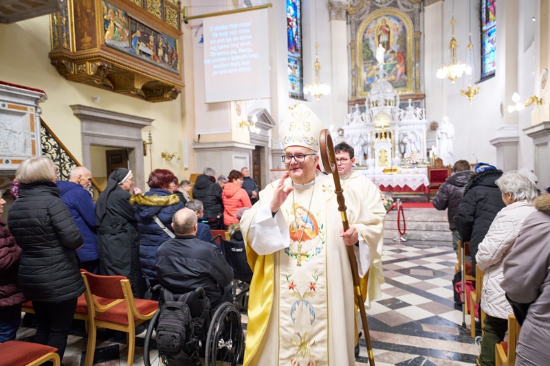Na praznik Lurške Matere Božje je sveto mašo v baziliki Marije Pomagaj daroval koprski škof msgr. dr. Peter Štumpf. Ob njem so somaševal še številni duhovniki, med drugim tudi rektor bazilike, dr. p. Robert Bahčič ter msgr. Miro Šlibar, bolniški duhovnik, ki je v uvodu v sveto mašo pozdravil tudi kot odgovorni za pastoralo zdravja pri Slovenski škofovski konferenci. »Hvala, da ste se pridružili, da bomo z Jezusom in Marijo delili svojo zbeganost, svoje skrbi in razočaranja, tako nas nagovarjajo iz poslanice svetega očeta za 33. svetovni dan bolnikov.« Obenem je izrazil veselje in zahvalo, da je novi koprski škof msgr. Peter Štumpf na praznik Lurške Matere Božje prišel prvič k Mariji Pomagaj. »Hvaležni smo, da lahko skupaj obhajamo sveto mašo prav na praznik Lurške Matere Božje.«