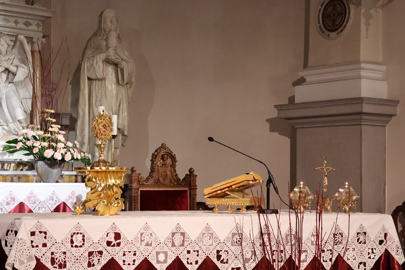 Ob koncu svete maše je p. Robert prisotnim romarjem podelil blagoslov z relikvijami sv. Leopolda Mandića.