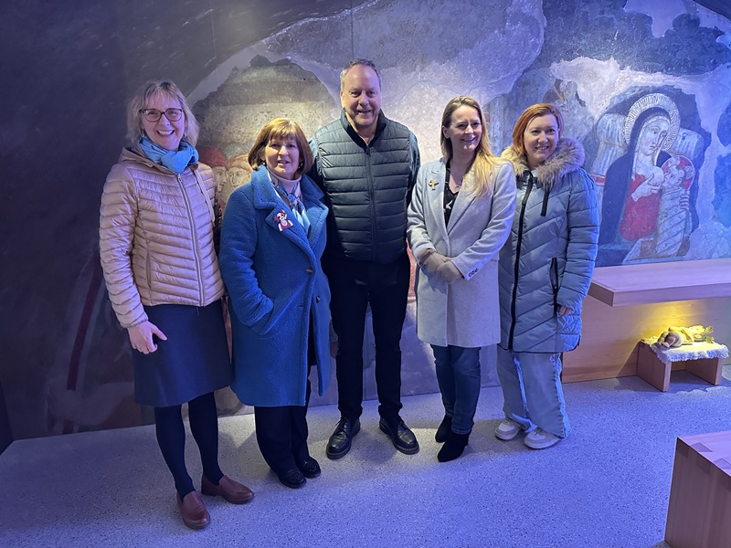 Goste sta pred baziliko Marije Pomagaj sprejela rektor bazilike, dr. p. Robert Bahčič ter direktorica Romarskega urada Brezje. predstavila sta jim zgodovino nastanka Marijinega svetišča, bazilike Marije Pomagaj. Obisk so zaključili v Muzeju jaslic Brezje.
