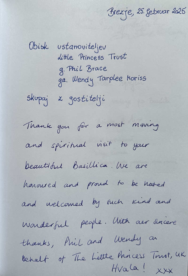 Ustanovitelja Little Princess Trust, ga. Wendy in g. Phil sta bila nad obiskom navdušena in sta svoje misli zahvale tudi zapisala v knjigo gostov svetišča. Z obljubo, da se k Mariji Pomagaj še vrneta.