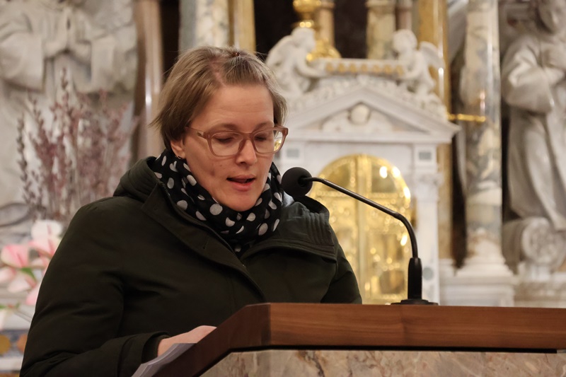 V uvodu v sveto mašo je prisotne pozdravila ga. Mojca Kepic, na Karitasu odgovorna za akcijo 40 dni brez alkohola.