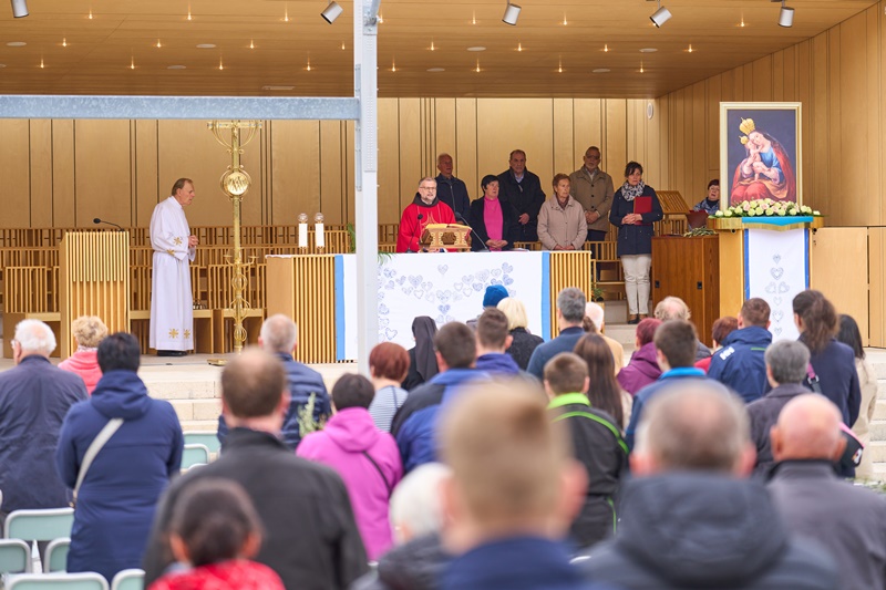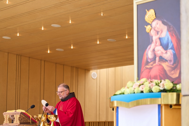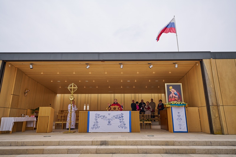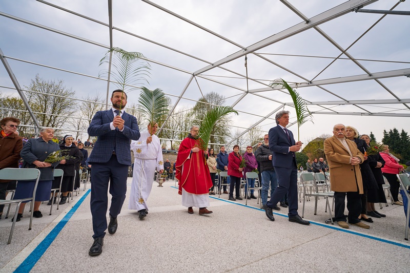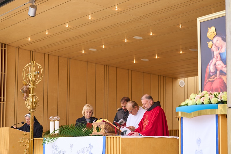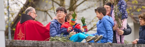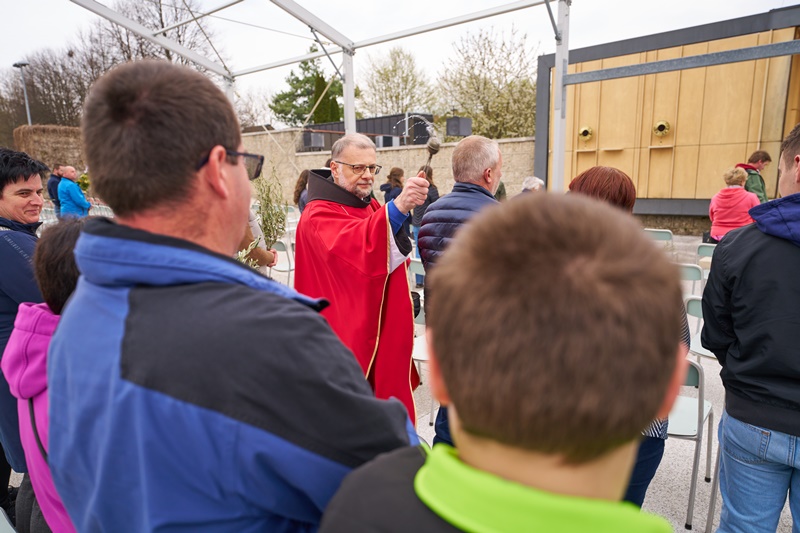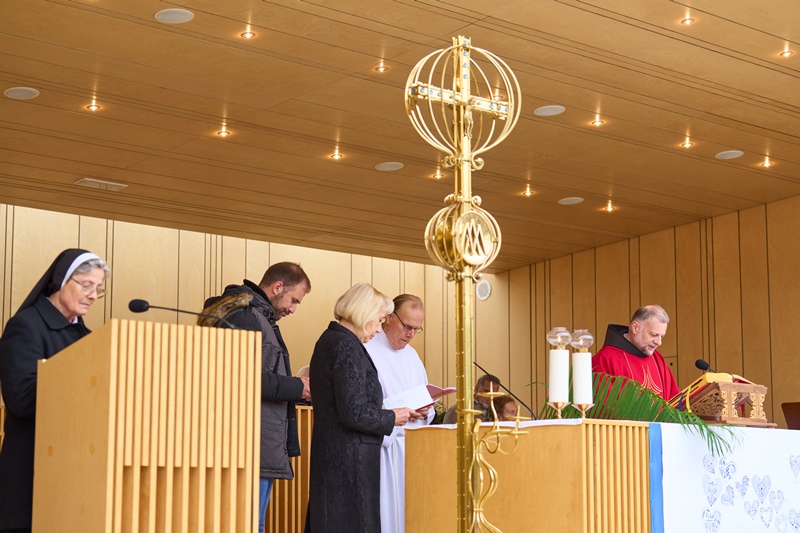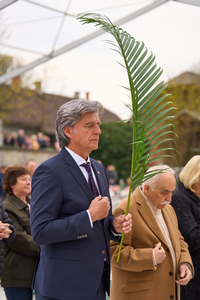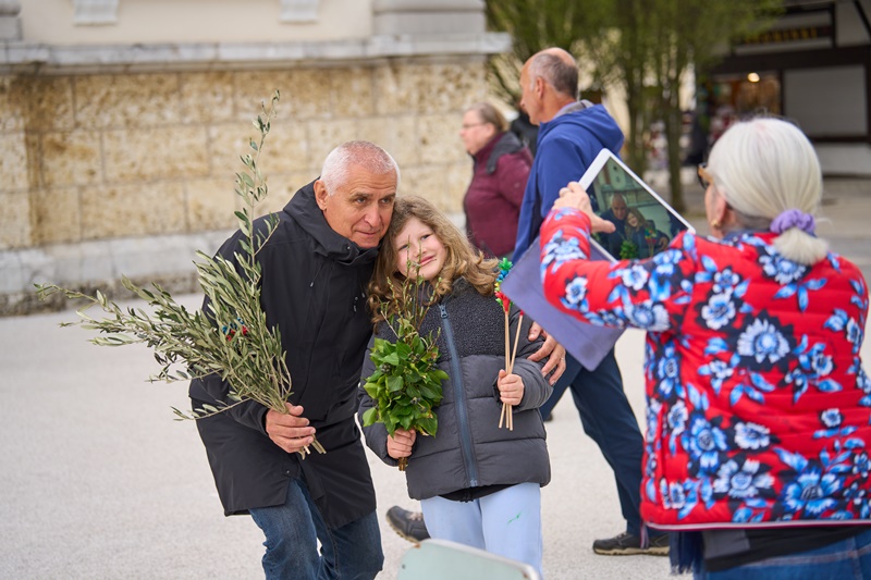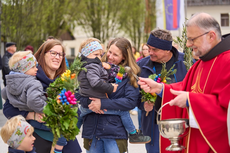Na Cvetno nedeljo se je pri Mariji Pomagaj zbralo veliko število romarjev. Osrednja romarska sveta maša ob 10. uri je letos prvič potekala na trgu pred baziliko Marije Pomagaj. Daroval jo je rektor svetišča, dr. p. Robert Bahčič. Ob začetku svete maše je blagoslovil zelenje, raznovrstne butarice, begance ter oljke, ki so jih romarji prinesli v blagoslov.