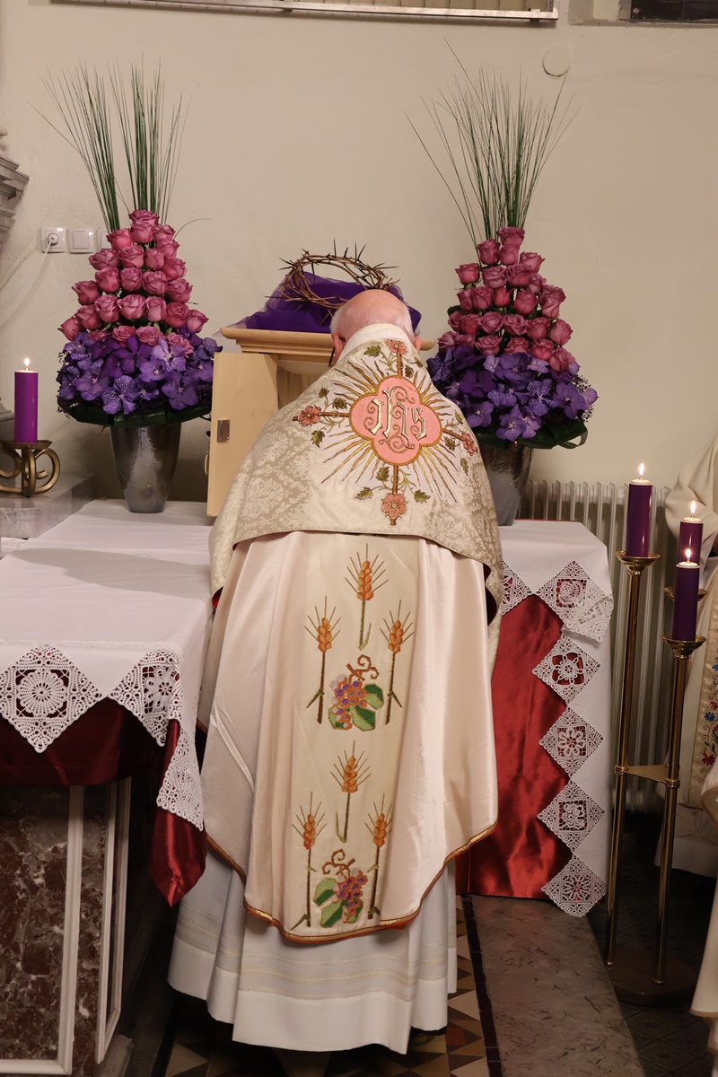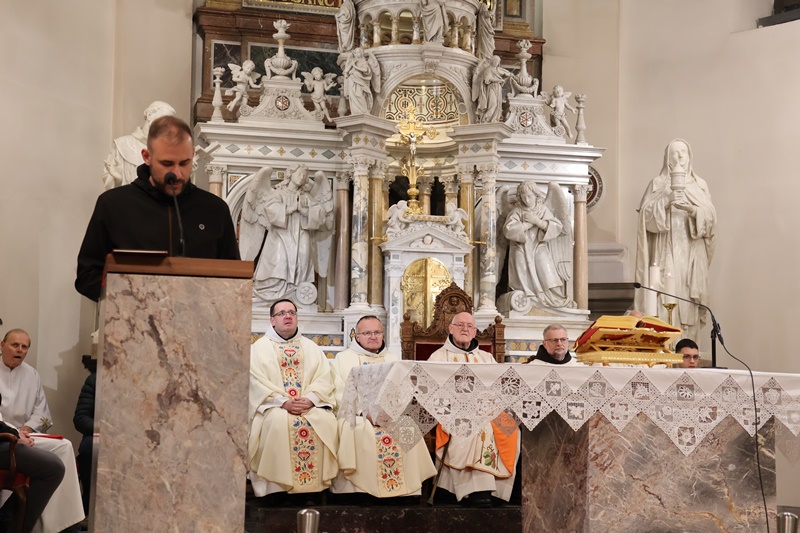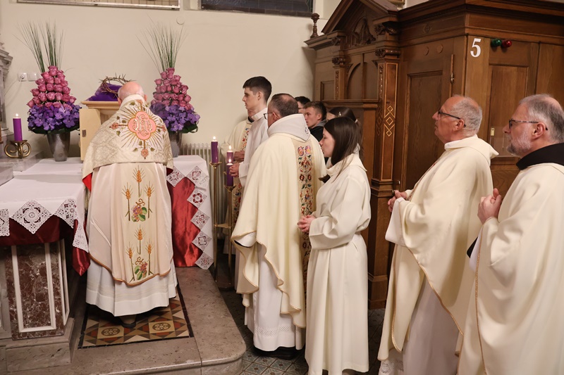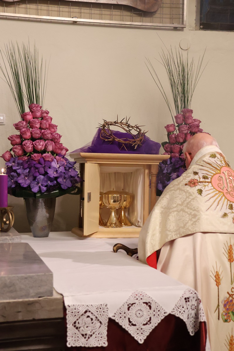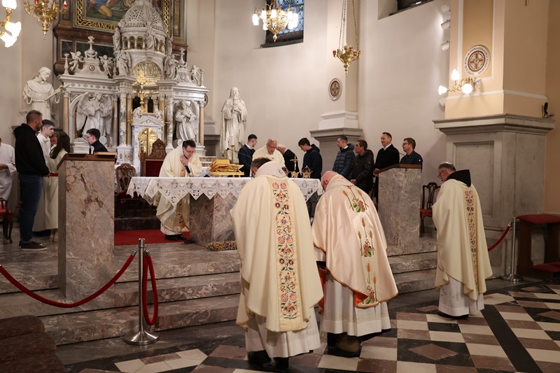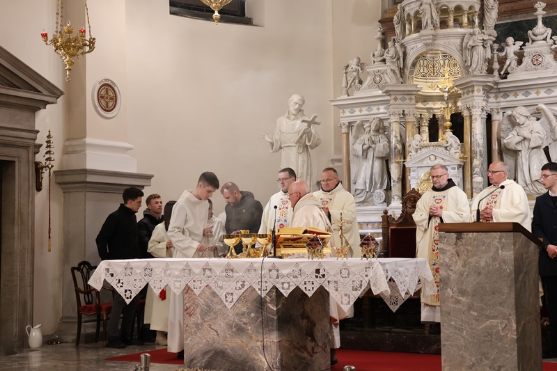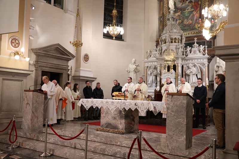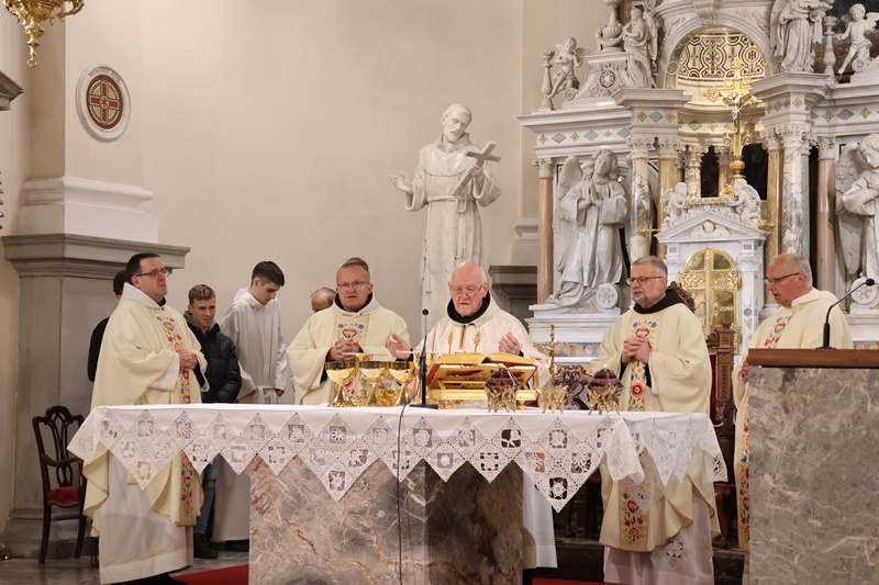 “Vstopamo v najpomembnejši del cerkvenega leta. Naše upanje v tem času dobi svežino novega življenja. Spominjamo se treh dejanj Jezusovega življenja: evharistija, ustanovitev zakramenta duhovništva ter obred umivanja nog apostolom. S tem Jezus nakaže ljubezen do konca. Bistvo služenja je v darovanju drugim. Jezus nas želi očistiti madeža greha. Zato praznujmo Veliki četrtek z veselim srcem. Evharistija naj postane hrana našega življenja.” Je med drugim v pridigi dejal p. Viktor Papež.
