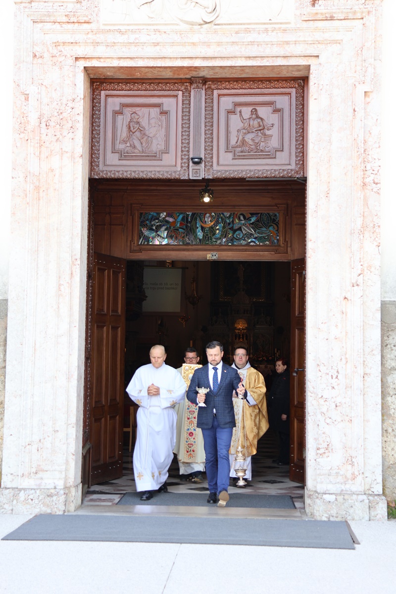 Med sveto mašo je prispela novica, da je h Gospodu odšel papež Frančišek, zato je p. Tadej pokojnega papeža priporočil v molitev, ob koncu svete maše pa smo v zahvalo za papeža zapeli zahvalno pesem.