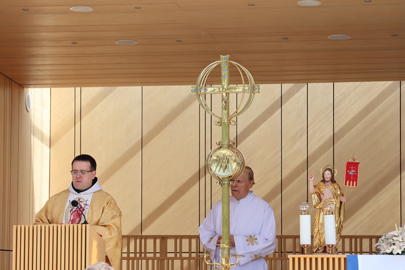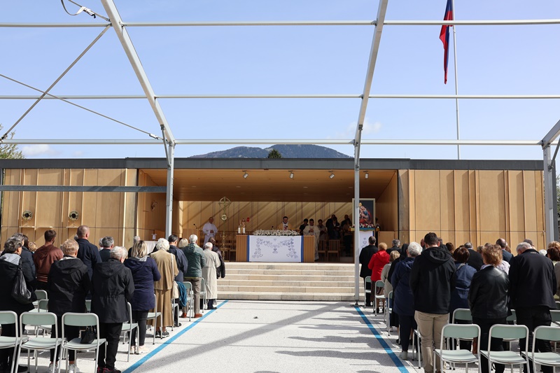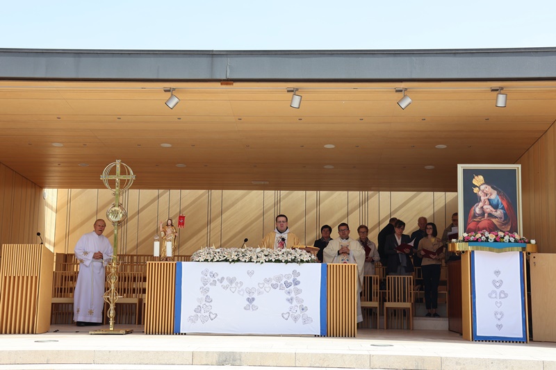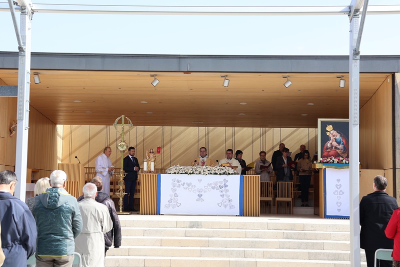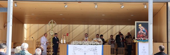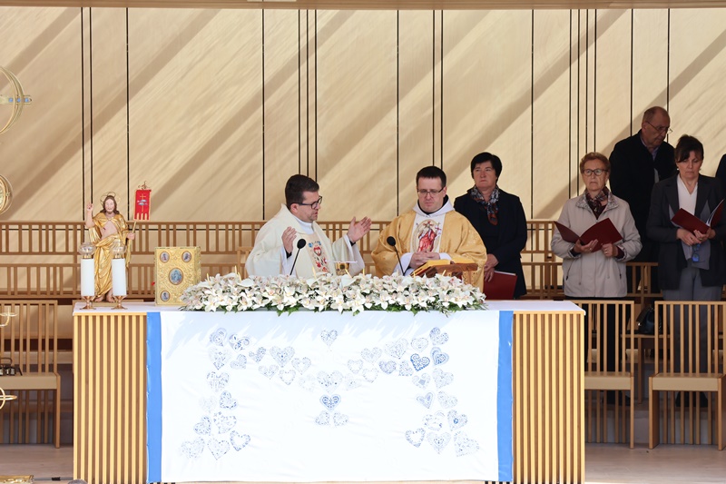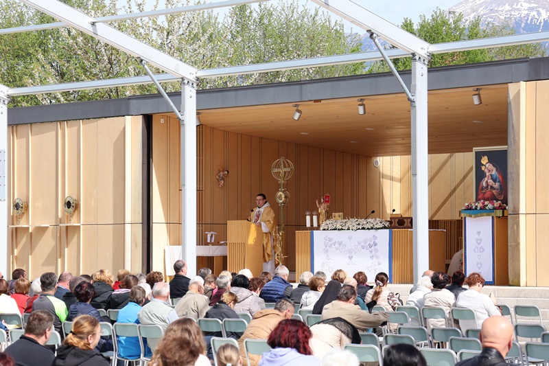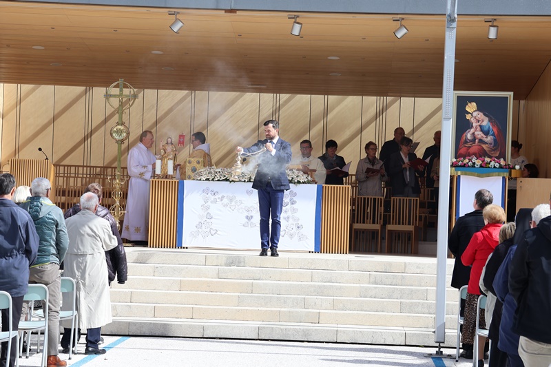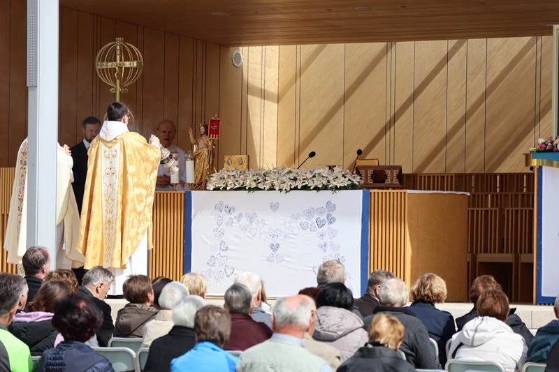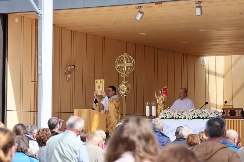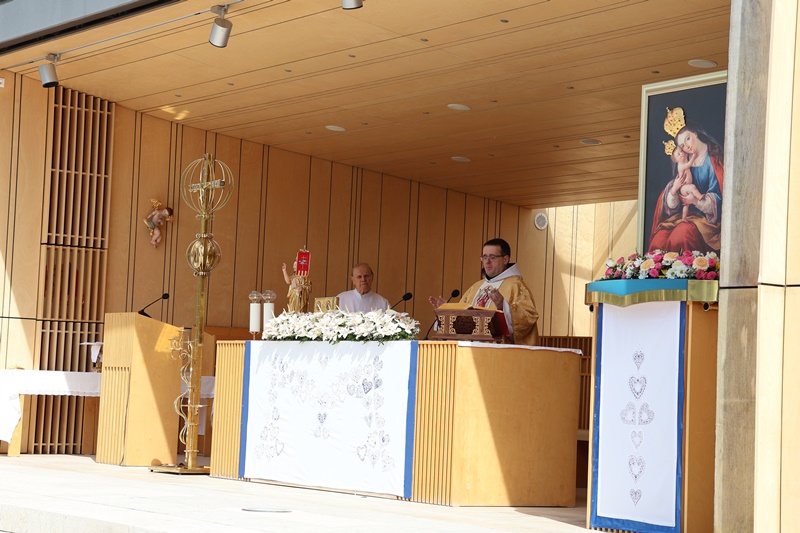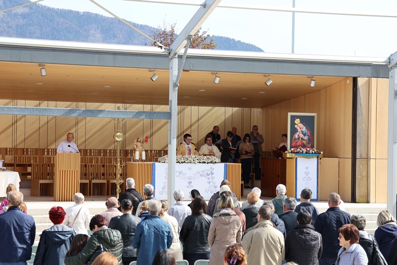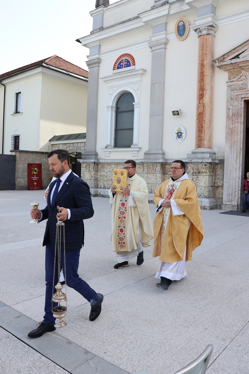 Osrednjo romarsko sveto mašo je ob 10. uri na trgu pred baziliko daroval p. Tadej Inglič. Pri oltarju se mu je pridružil g. Majk Rušec, iz župnije v Zagorskim Selima na Hrvaškem. K Mariji Pomagaj je priromal skupaj avtobusom župljanov.