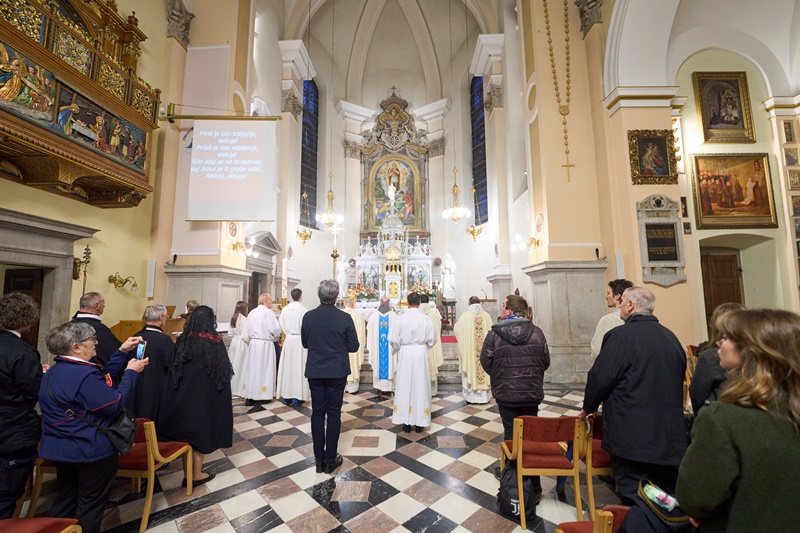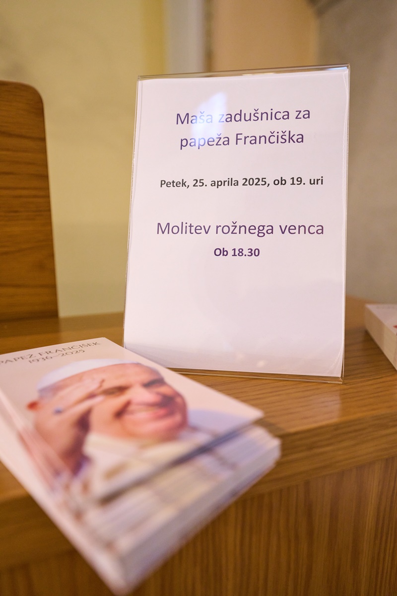 Hvala Vam dragi papež Frančišek, da ste nam s svojim zgledom kazali načine, kako naj se oklepamo Jezusa Kristusa, njegove in naše Matere Marije in kako naj služimo v Cerkvi, da bomo vsi resnično bratje in sestre med seboj, ko še skupaj romamo, kot romarji upanja, proti nebeškemu Jeruzalemu. Upanje, po vaših besedah, »pomeni biti usidran na obali onostranstva. Prvi kristjani so upanje uporabljali kot sidro, pritrjeno na obali onostranstva. Naše življenje je namreč hoja proti temu sidru.« Vi ste že tam in zato si Vas upamo prositi, kakor ste Vi vedno prosili nas: »Prósimo, ne pozabite moliti za nas!« Je pridigo zaključil p. Robert Bahčič.