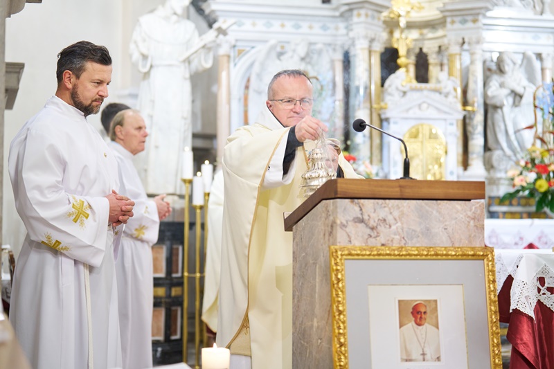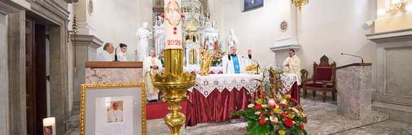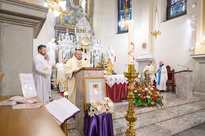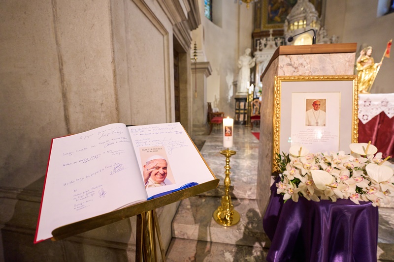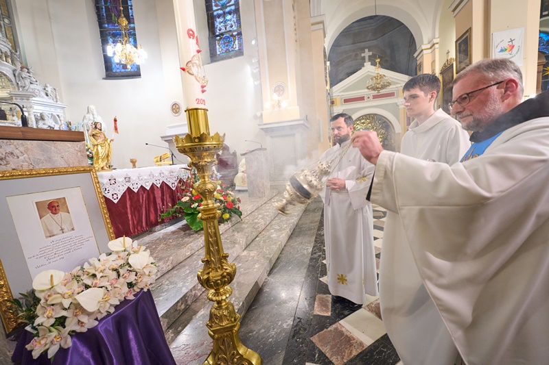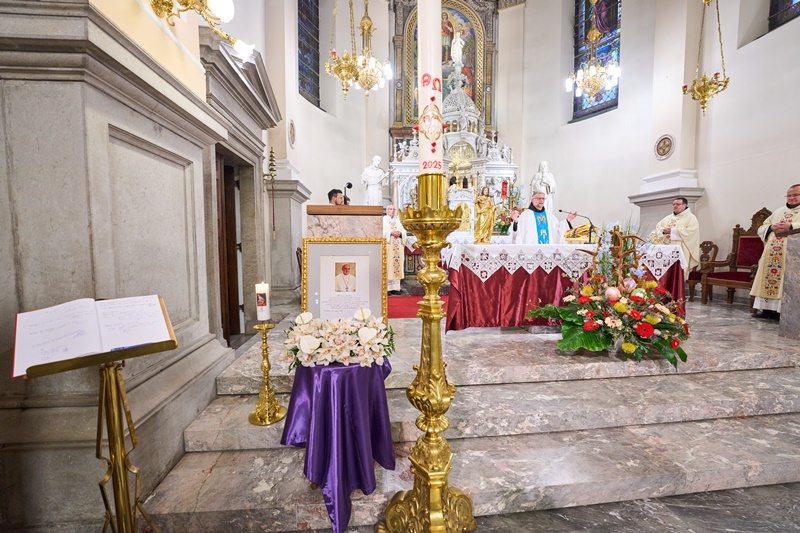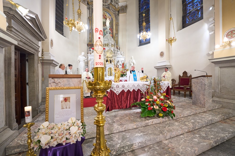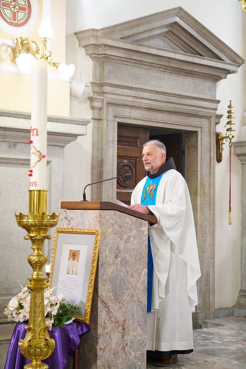 Na Velikonočni ponedeljek je h Gospodu odšel papež Frančišek. Na predvečer pogreba papeža Frančiška smo se z molitvijo rožnega venca ter sveto mašo zahvalili za življenje in delo pokojnega papeža. Somaševanje je vodil rektor bazilike Marije Pomagaj, dr. p. Robert Bahčič. Ob njem so somaševali p. Krizostom Komar, p. Tadej Inglič ter g. Pavle Juhant. Svete maše so se udeležili tudi člani Malteškega reda Slovenija ter Društva Malteška pomoč.
