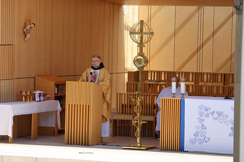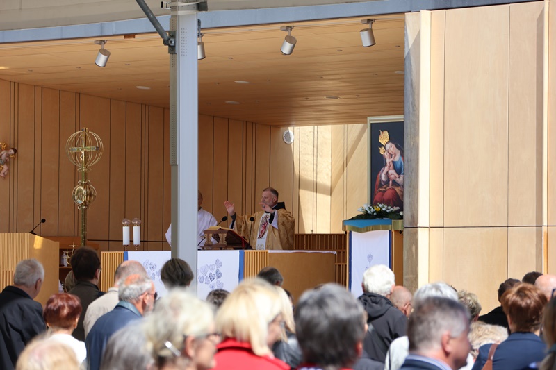 Na sončno nedeljo Dobrega Pastirja se je pri Mariji Pomagaj zbralo veliko romarjev. Dopoldanski sveti maši ob 10. uri in 11.30 sta bili na trgu pred baziliko Marije Pomagaj. Osrednjo romarsko sveto mašo ob 10. uri je daroval rektor bazilike, dr. p. Robert Bahčič. V pridigi je spregovoril o današnji Božji besedi: “Prispodoba pastirja, ki vodi svojo čredo, je globoko zasidrana v življenju Aramejcev, izraelskih očakov sredi pastirskega načina življenja. Pastir je bil voditelj in tovariš. Je močan človek, ki brani pred vsemi nevarnostmi. Svetopisemsko izročilo govori o dobrem pastirju, o Božji skrbi za izgubljeno ovco, za izgubljenega grešnika. Ta dobri pastir je poslan k izgubljenim Izraelovim ovcam. Na koncu časov pa bo ločil ovce od ovnov. Tukaj gre za dobrega pastirja, ki svojim ovcam odkriva Očetovo ljubezen in dobroto. Je edini srednik, vrata, ki vodijo k ovcam. Končno je Jezus popolni pastir, ker pravi, da da svoje življenje za ovce. Tako jih poveže med seboj, ker jih združuje Očetova ljubezen in jim zagotavlja večno življenje.