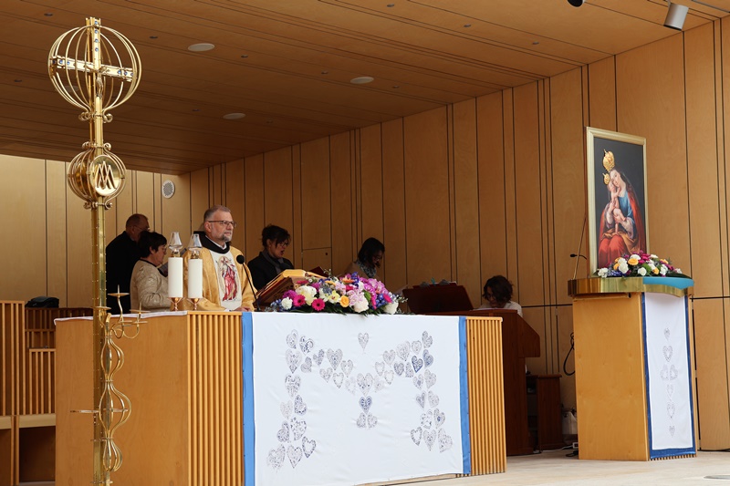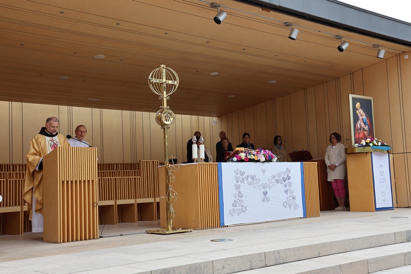 Včeraj smo obhajali praznik Marije Pomagaj in mnogi romarji so tudi danes priromali h Kraljici Slovencev. Osrednjo romarsko sveto mašo je na trgu pred baziliko Marije Pomagaj daroval rektor svetišča, dr. p. Robert Bahčič. V pridigi je med drugim dejal: “V evangeliju, ko Jezus govori o prihajajočem slovesu vtisne mladi Cerkvi v njeno notranjost eno besedo: MIR. Svoj mir vam dajem ne kakor ga daje svet. Kakšen svet ima v mislih Kristus, ko razlikuje svoj mir in mir sveta?