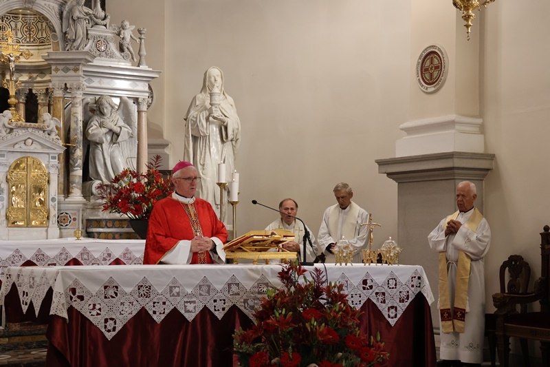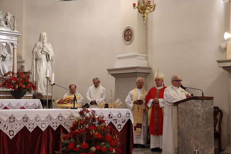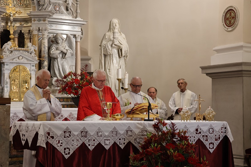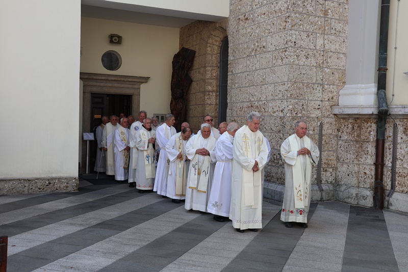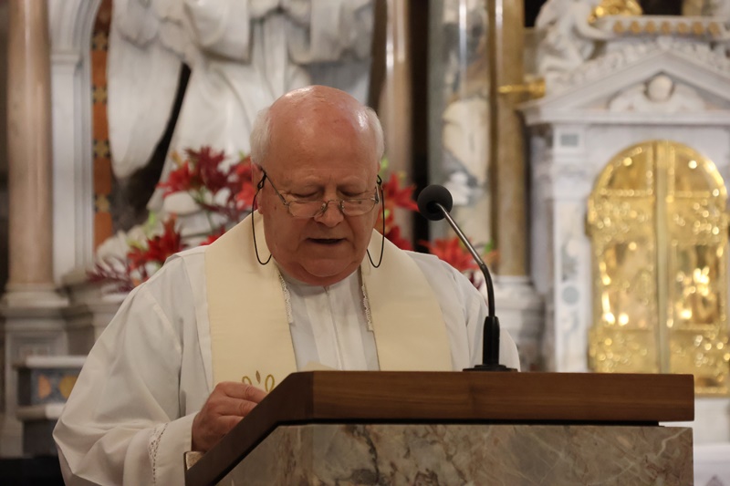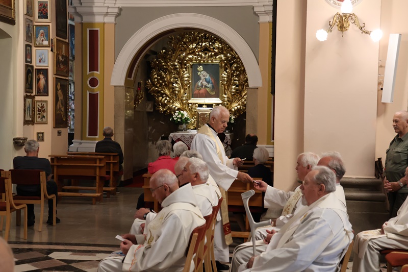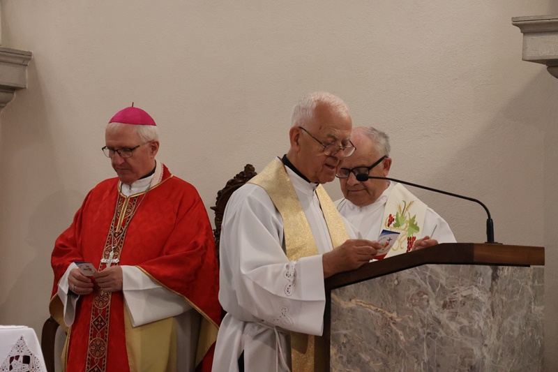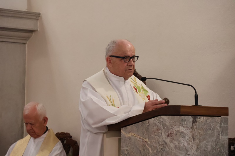 »61 nas je bilo posvečenih leta 1975 za celotno Slovenijo, 17 za ljubljansko nadškofijo. 18 jih je Gospod že poklical k večnemu bogoslužju. Danes nas je ob Gospodovem oltarju zbranih 23, nekateri so se opravičili, nekateri iz zdravstvenih razlogov niso mogli priti. Za vse bomo molili z Danielom Ropsom: Daj, da bomo s pogumnim srcem sprejemali preizkušnje in da bo vsaka ura časa, ki nam je v življenju še odmerjena, kakor podaljšana maša, ko se bomo darovali in žrtvovali.« Je uvod v sveto mašo zaključil msgr. Miro Šlibar.