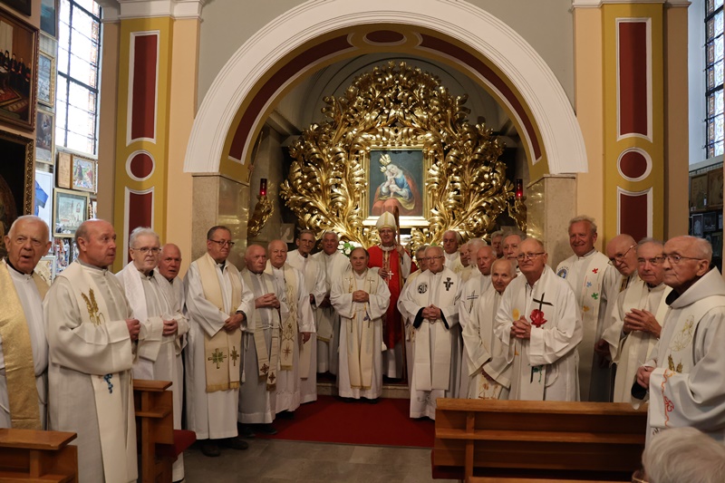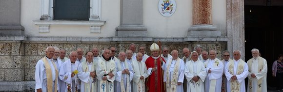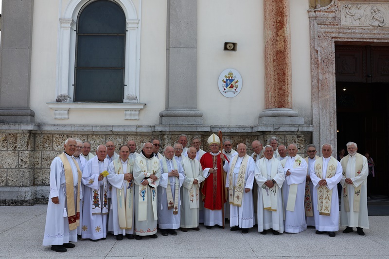 »S pastirjem ljubljanske nadškofije, msgr. Stanislavom Zoretom, se zbrani duhovniki zahvaljujemo za 50 let duhovništva, vsem, ki so bili naši sopotniki, romarji na poteh našega pastirovanja.« Je v uvodu v sveto mašo dejal msgr. Miro Šlibar, tudi letošnji zlatomašnik in pobudnik zahvalne svete maše pri Mariji Pomagaj.