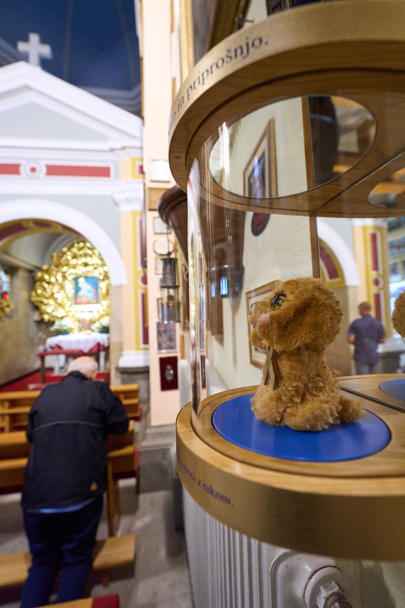 V pridigi je pater Robert Bahčič spregovoril o pomenu nocojšnje svete maše in poti, ki je plišastega junaka Zlatka pripeljala k Mariji Pomagaj na Brezje.
