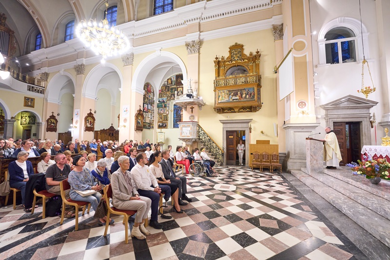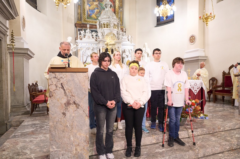 Redno mesečno molitev za bolnike z rakom smo zato nocoj posvetili mladim junakom, ki se soočajo z boleznijo raka, njihovim družinam in najbližjim. Večer smo ob 18.30 pričeli z molitvijo rožnega venca in ob 19. uri nadaljevali s sveto mašo, ki jo je daroval rektor bazilike, dr. p. Robert Bahčič. Med sveto mašo je p. Robert blagoslovil vitrino s plišastim kužkom Zlatkom.