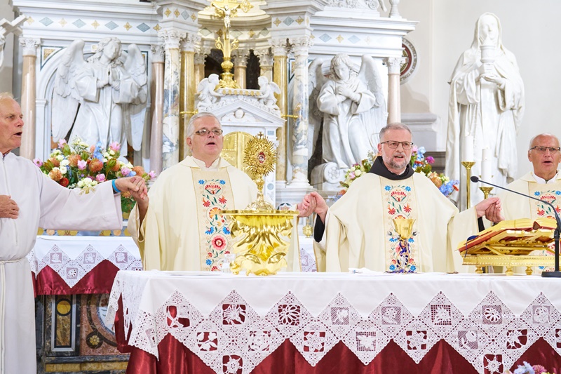 Pri sveti maši so, tako kot vsak drugi petek v mesecu, sodelovali člani skupine molivcev za bolnike z rakom. Na orglah je sveto mašo spremljal p. Tadej Inglič.